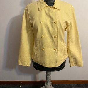 Eileen Fisher Yellow double breasted jacket, size Large Petite (size label missing) (98% Cotton, 2% Spandex)