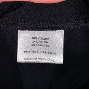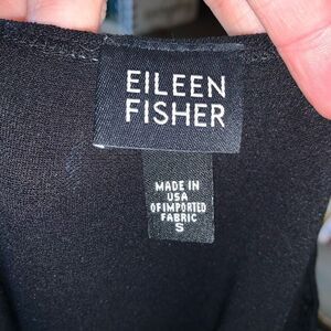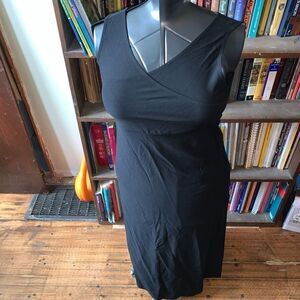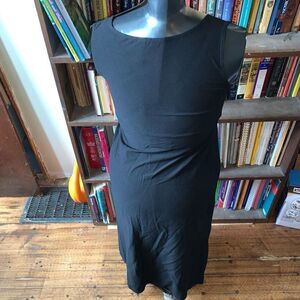 Eileen Fisher stretchy, classic, little black dress. High, crossover v-neck. Travels well. Classic on its own or add a cardigan or jacket. Approximately 16.5 inches from armpit to armpit, 16 inches across the waist, and 45 inches long. Originally $199. In good, gently used condition. From a pet and smoke free house. Happy to bundle!
