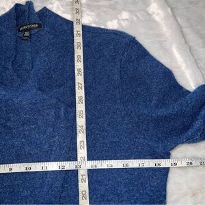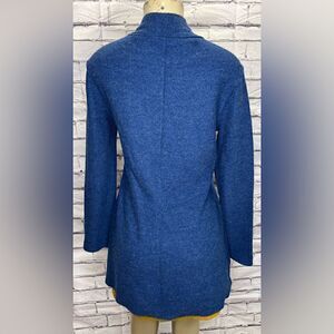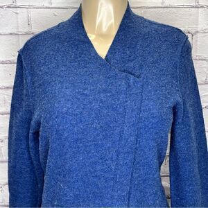 Eileen Fisher Asymmetrical Zip Cardigan Blue 100% merino wool.
