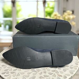 Eileen Fisher $225 Posy Leather Suede Pointed-Toe Flat – Scalloped Topline – Wom