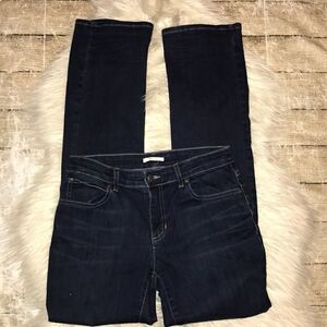 Good, preloved condition. Eileen Fisher Straight Leg Denim Jeans. Dark wash. Great stretch. Typical signs of wear.