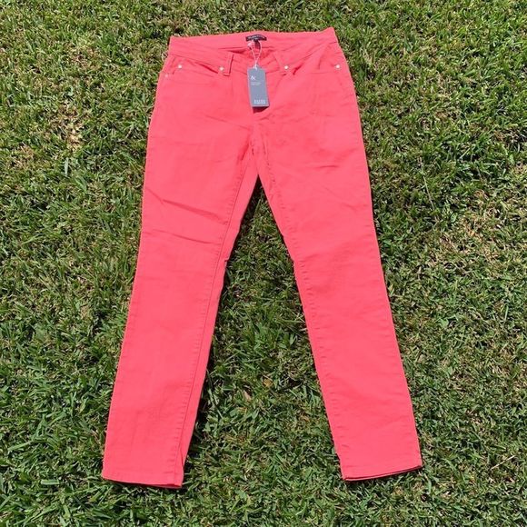 Peony skinny ankle jeans by Eileen Fisher. Brand new with tags - never been worn. Zipper and button closure at crotch. Belt loops. Pockets in front and back. Inseam measures 27.5 inches. Size 2.