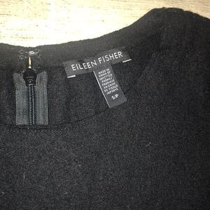 Great, preloved condition. Eileen Fisher Sleeveless Midi Dress. Black. Hidden zipper in the back. Raw, unfinished hem. 100% wool.