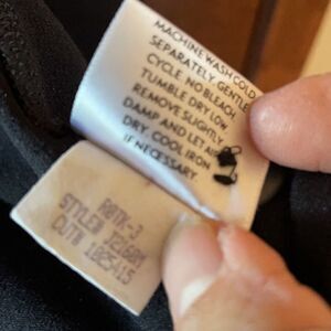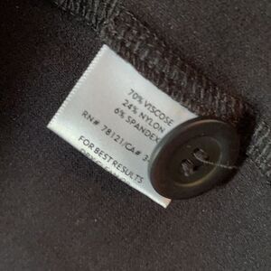 Just an elegant professional 2 piece suit. Angled button front, with long sleeves. Jacket is a Medium, Pants are a Small. Jacket length 30.5”, Sleeves 23.5”, Bust 21”; Pants have elastic waist, but measure 16” across when laying flat, Inseam 31”. Great classy look!