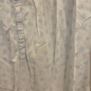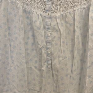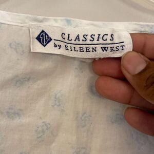 Eileen West classic nightgown size small in good preowned condition normal wear and tear. This is a long nightgown white with blue flowers lace at the top buttons. Going down the front see pictures for more details pit pit is approximately 20 inches length is approximately 45 inches and overall good condition see pictures for more details