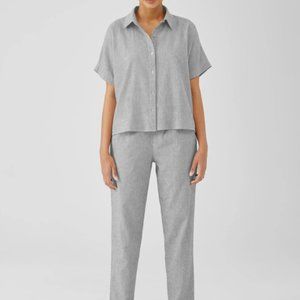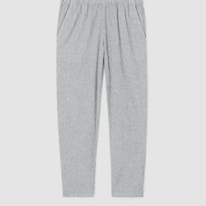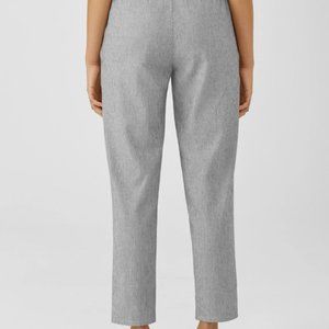 Eillen Fisher Black/Soft White Organic Cotton Linen Ticking Stripe Tapered Pant