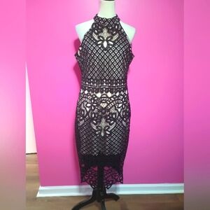 Eilly Bazar Ladies Black Lace Overlay Midi Pencil Dress (Size XL)