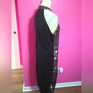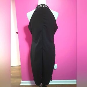 features: sleeveless, halter collared neckline, back zipper closure, all season dress, classic pencil style fit.
