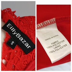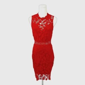 Eilly Bazar Red Lace Dress Small Mock Neck Sleeveless Fitted Mini Zippered Back