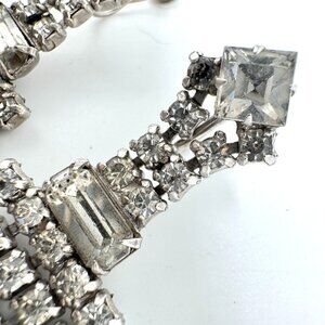 Some rhinestones show minor discoloration, typical of vintage pieces.