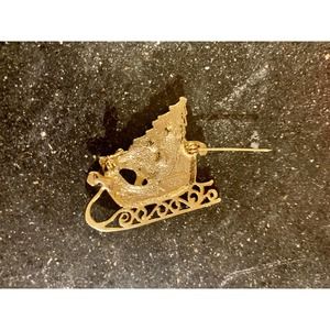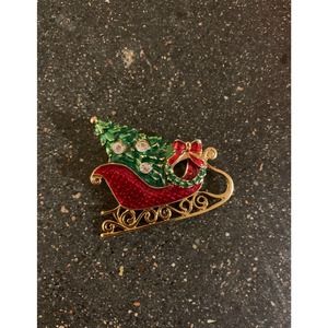 Eisenberg Christmas Enamel Brooch Rhinestone Tree in Sled with Wreath