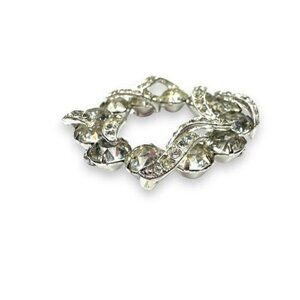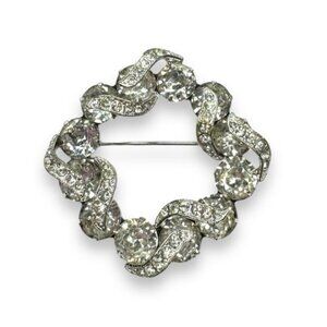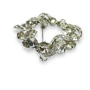 Eisenberg Clear Rhinestone Wreath Brooch Silver Tone Swirl Design Vintage
