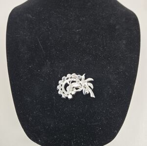 Eisenberg Ice Womens Clear Rhinestone Brooch Pin Silver Tone, Flower Curved Stem