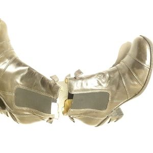Eject 100 %leather. Distress 2.5 heels, tiny unnoticeable scratches.