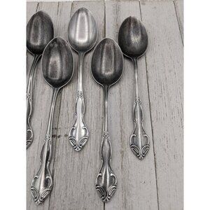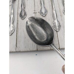 This set of flatware shows quite a bit of wear. The tablespoon are discolored and look tarnished.