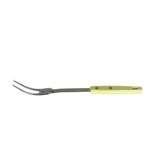 This carving fork tells a tale of durability and timeless utility. Its stainless steel construction ensures longevity, while the cheerful yellow handle adds a bright touch to any kitchen setup. Whether for holiday roasts or everyday meals, this trusty tool offers precision and functionality, embodying both sturdiness and charm.