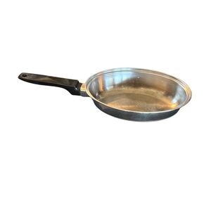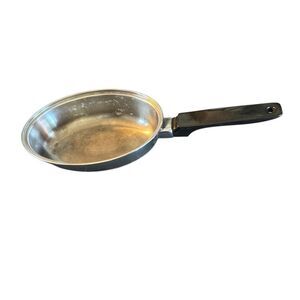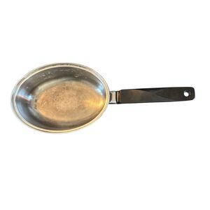 Ekcoware Stainless Steel With Thick Copper Bottom Oval Frying Pan. Pan is 8” x 5.5” oval. Total 13.5” long. It has some scuffs and light marks but is in good condition.
