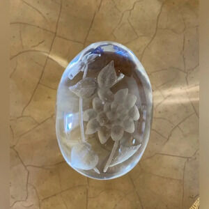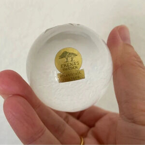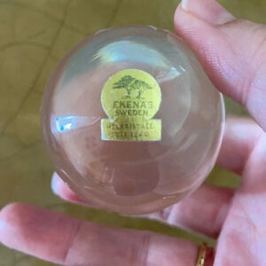 This amazing clear crystal egg has floral detail and flat spot in back side for display. Ekena’s Sweden Helkenstall Full Lead Crystal. Beautiful no bruises. Hard to photograph original sticker intact
