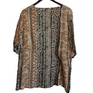 Ekloz Rayon Women Top L Abstract Animal Print Muted Earth Tones Boho Chic Retro