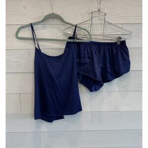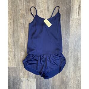 Ekouaer Pajamas Sexy Womens Satin Sleepwear Lingerie 2 Piece top & Shorts- Medium. Navy blue. New with tags. Elastic stretch waist on shorts, adjustable top with tie back. 2" inseam.