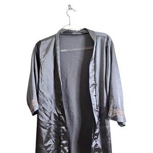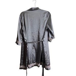 Ekouaer Robe Womens Small Classic Gray Satin Kimono Short Lounge Lace Accent