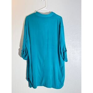 Ekouaer Teal Roll-Tab Sleeve Tunic Shirt Blouse Women’s XXL