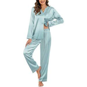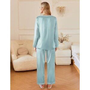 Ekouaer Women's 2-Piece Silk Satin PJs- Comfy Long Sleeve Sleep & Lounge Set XL