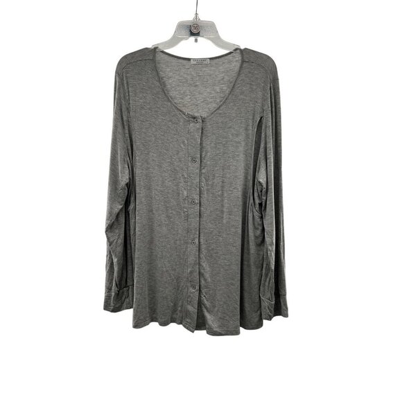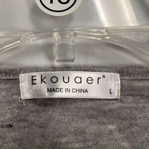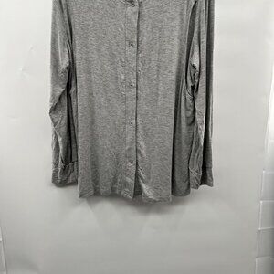 Ekouaer Women's Button Up Scoop Neck Sheer Top Long Sleeve Gray Size Large