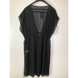 Add a touch of elegance to your beach look with this Ekouaer sheer cardigan cover-up. The solid black color and chiffon material make it a versatile piece that can be paired with any swimwear. The drawstring waist gives it a flattering shape while the flowy fabric provides a comfortable fit. This cover-up is perfect for both men and women and is available in size XL.
