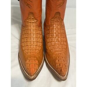 El Alacran De Durango Orange Crocodile Tail Cowboy Boots Sz 6.5 Scorpion
