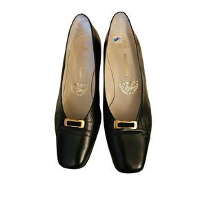 El Corte Ingles block Heels size 7 made in Spain black leather gold tone detail