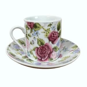 El Ganador Porcelain Floral 2 oz Demitasse Cup Saucer Pink Roses Small 2" Tall