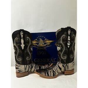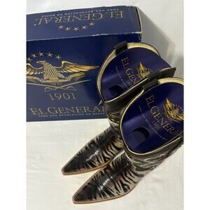 El General Cowboy Boots Mens Sz 8 Tiger Stripe Lizard Skin Exotic Leather Brown