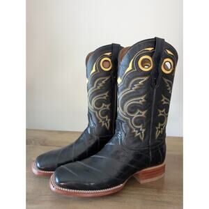 El General Western Boots Mens Size 7.5 Black Genuine Leather Exotic Square Toe