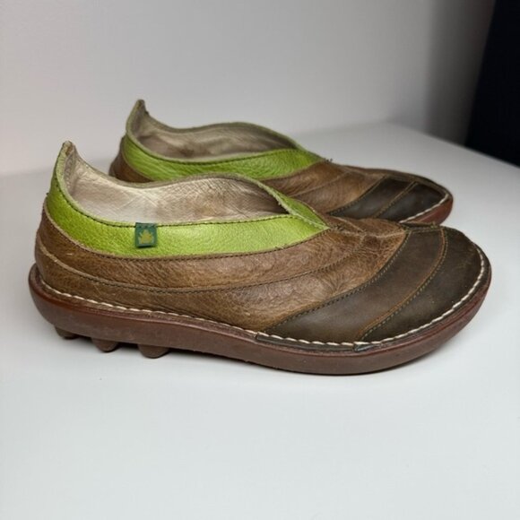 El Naturalista Brown and Green Slip-On Shoes Leather Shoes Size 36