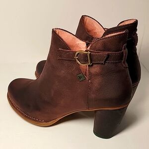 El Naturalista Colibri Bootie Ankle Boots Block Heels Side Zip Brown Leather 40