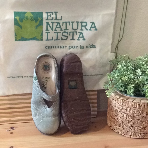 From Spain to the world, El Naturalista, high quality comfy street walking shoes. Rubber platform sole, quality light blue (little bit of gray) distressed leather. Used. Normal wear. This shoes will last forever! It’s just that I use more an identical but Green pair. Originally bought it on sale in Madrid for 99 euros. Dust bag included. Blue grayish color. Rarely used. Normal wear and tear. Photos reflects flaws. If in doubt, just ask!