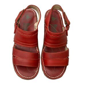 Vibrant red sandals with adjustable strap. Comfortable cork sole. Perfect for casual wear.