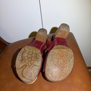 Burgundy, very comfortable leather sandals with heels. Worn twice. Very cute.