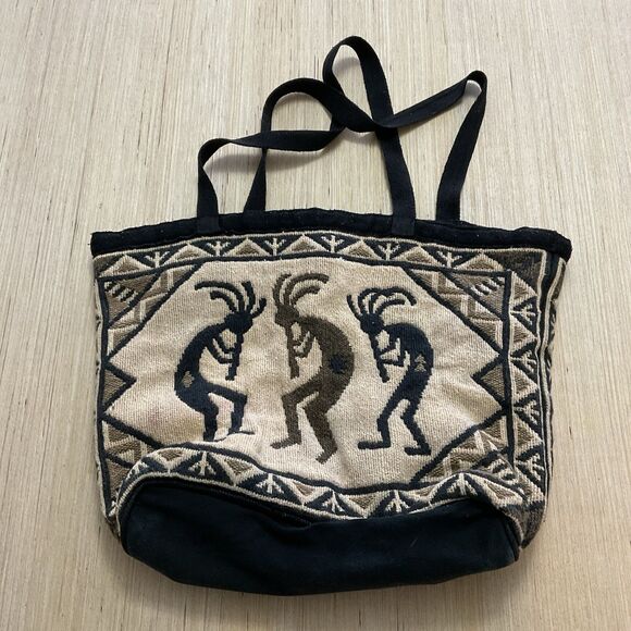 El Paso Saddle Blanket Bag Women's Black Cotton Stencil Purse Large Kokopelli