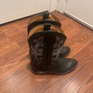 STEAL FOR THESE COWBOY BOTOS! Black Leather with Alligator skin and cool designs to elevate these black men cowboy boots.