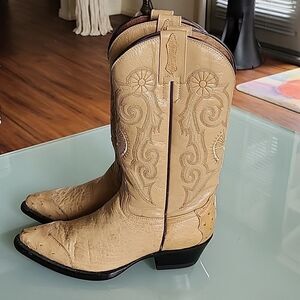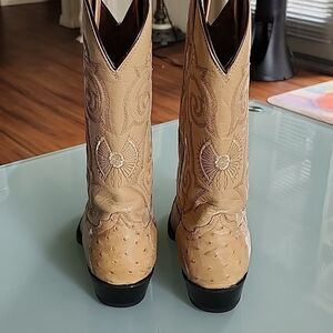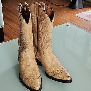 Gorgeous leather boots with both calf, and ostrich leather, made in Mexico, size 22.5, which according you the conversion chart, is a size 5 1/2 in the U.S. C1.0112
