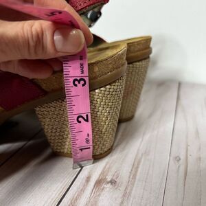 Like new condition except pink area on inner heel where red leather rubbed on tan area.