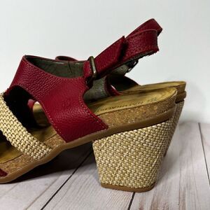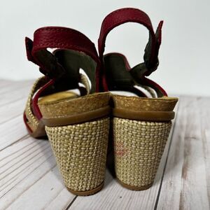 El Naturalista Red Leather Tan Woven Heeled Sandals