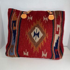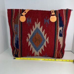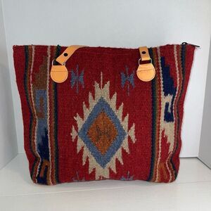 El Paso Saddle Blanket Wool Bag Southwestern Tote Boho Hippie Leather Straps