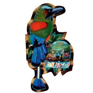 Vibrant wood wall hanging from the Cortando Cafe in El Salvador.