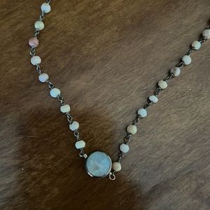 Dainty Ela Rae necklace that would be great for stacking with other necklaces. Neutral colors to match all of your pieces!