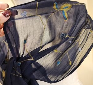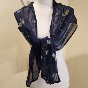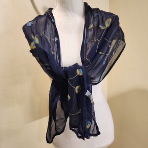 Elaine Gold Navy Blue Light Weight Embroidered Neck Scarf