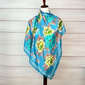 Elaine Gold for Collection XIIX Square Scarf Floral Blue Gold