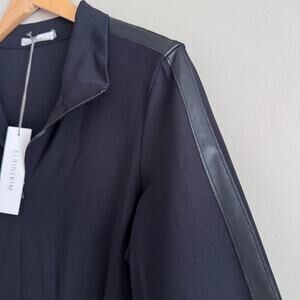 Elaine Kim Black Rimini Tech Stretch Zip Long Sleeve Leather Trim Dress New L